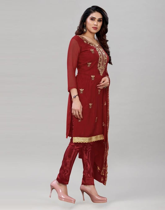 Enticing Maroon Georgette Embroidered Unstitched Salwar Suit