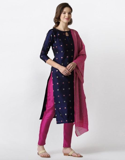 Enthralling Navy Blue Banarasi Silk Jacquard Unstitched Salwar Suit