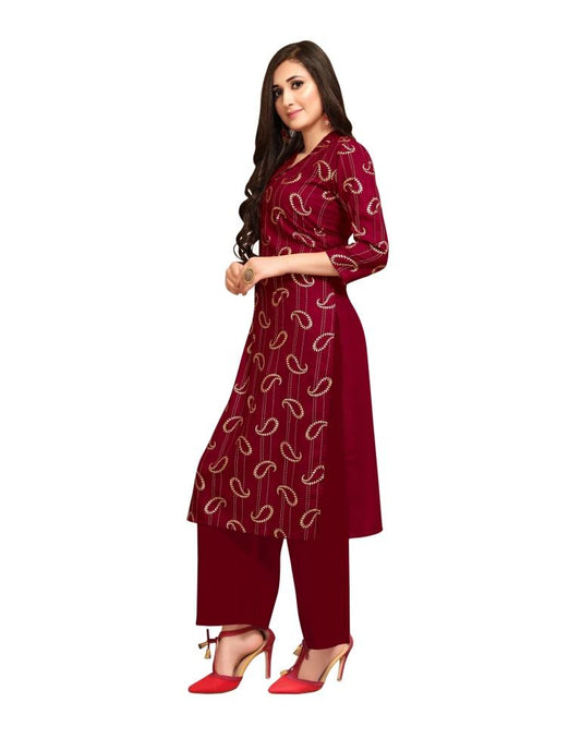 Epitome Maroon Coloured Foil Printed Rayon Kurti
