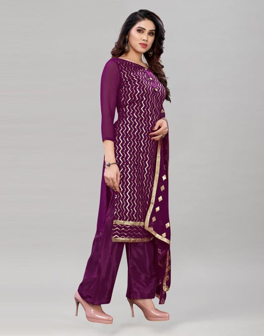 Ethereal Wine Georgette Sequence Work Unstitched Salwar Suit