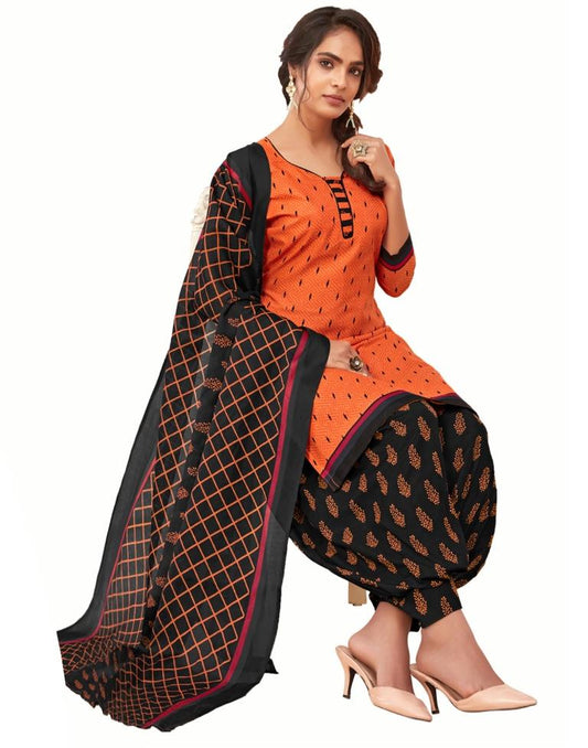 Epitome Orange Cotton Printed Unstitched Salwar Suit