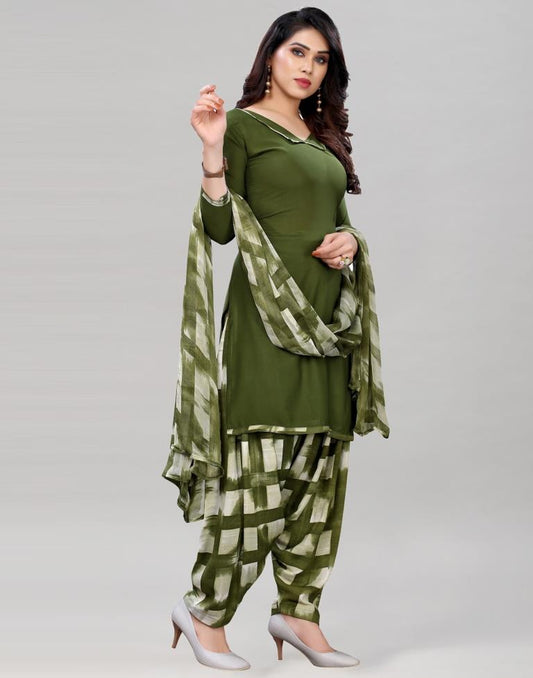 Ethnic Dark Olive Green Printed Unstitched Salwar Suit