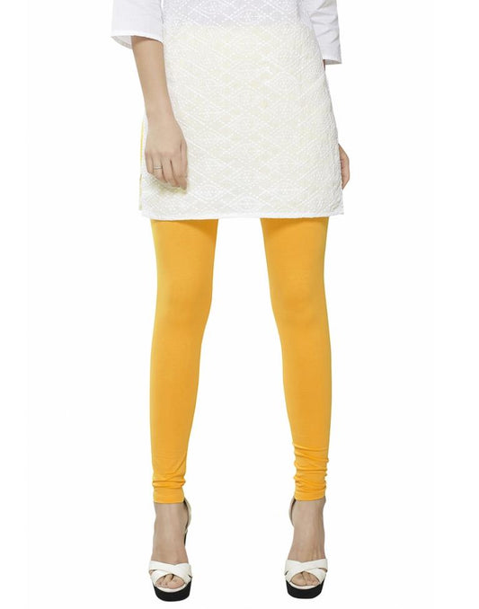 Ethnic Yellow Coloured Plain Cotton Leggings