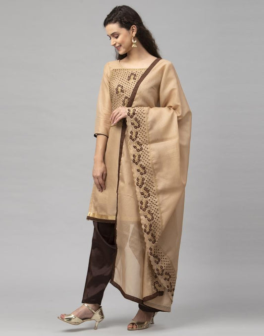 Exquisite Beige Cotton Embroidered Unstitched Salwar Suit