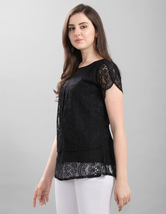 Fab Black Coloured Net Russell Net Partywear Top
