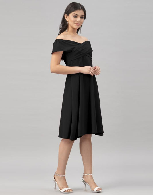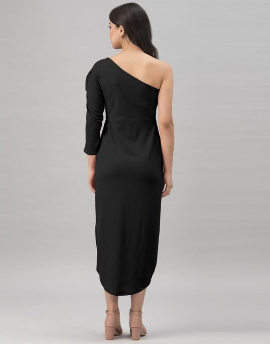 Fab Black Coloured Knitted Lycra Dress