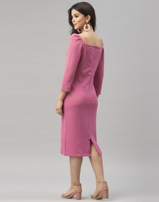 Exuberant Pink Coloured Knitted Lycra Bodycon