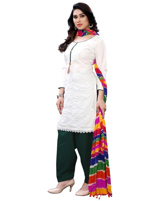 Gorgeous White Cotton Embroidered Unstitched Salwar Suit