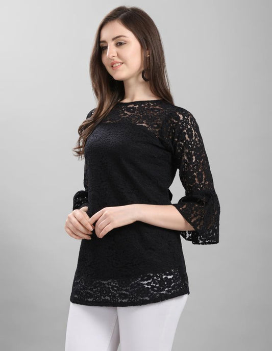 Regular price Rs. 429.00Regular priceUnit price / perRs. 0.00Sale price Rs. 429.00Graceful Black Coloured Net Russell Net Partywear Top