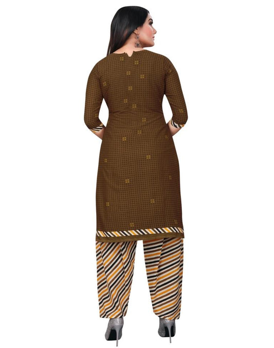 Graceful Coffee Brown Printed Unstitched Salwar Suit