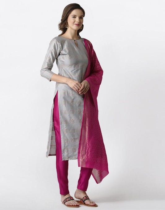 Graceful Grey Banarasi Silk Jacquard Unstitched Salwar Suit