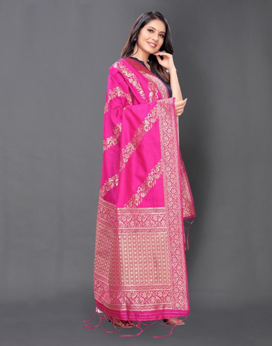 Graceful Pink Coloured Poly Silk Jacquard Dupatta