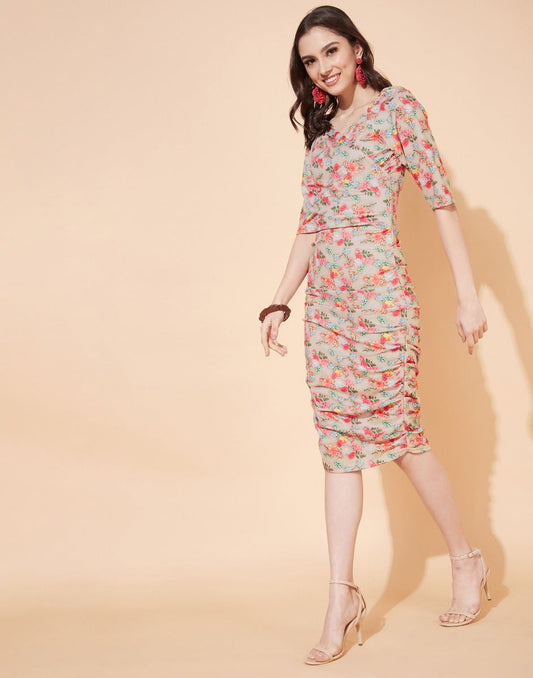 Regular price Rs. 609.00Regular priceUnit price / perRs. 0.00Sale price Rs. 609.00Beige Printed Bodycon