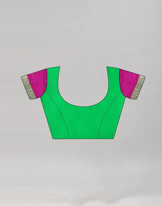 Green Cotton Digital Printed & Self Woven Saree With Tassel