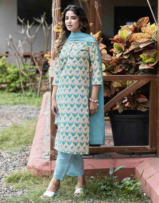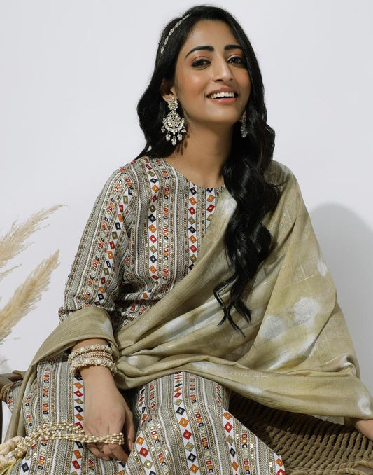 Regular price Rs. 969.00Regular priceUnit price / perRs. 0.00Sale price Rs. 969.00Beige Printed Straight Kurti With Pant And Dupatta