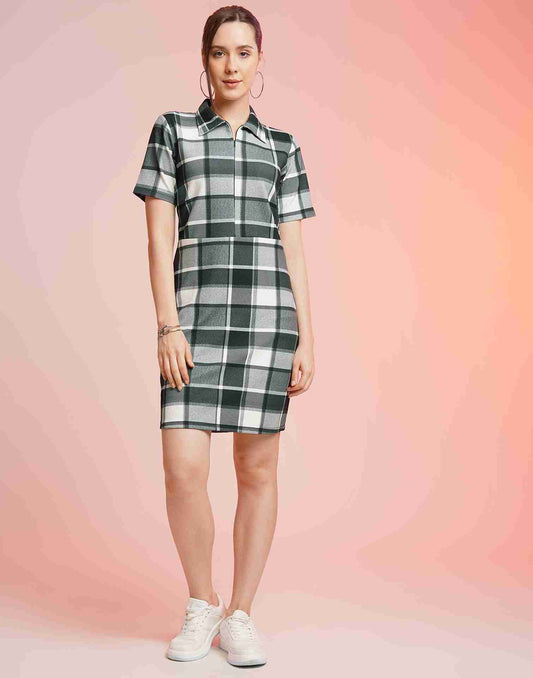 Green Lycra Printed Dress