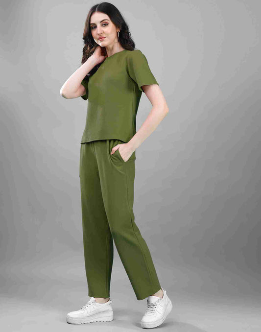 Green Lycra Plain Co-ord Set
