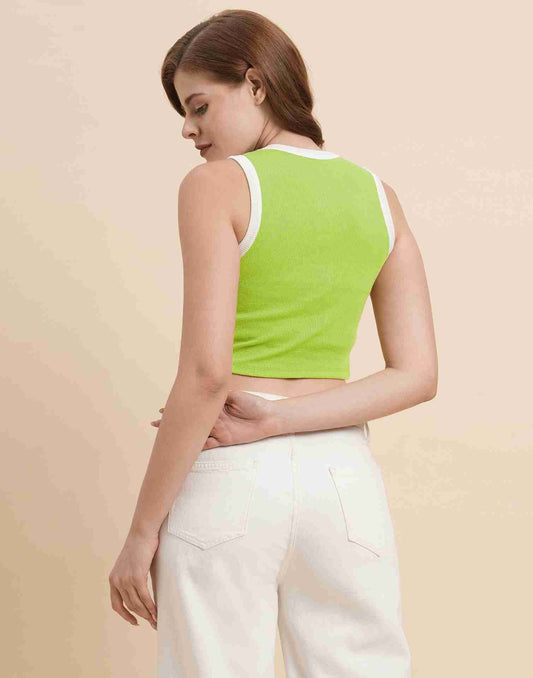 Green Lycra Plain Tank Top