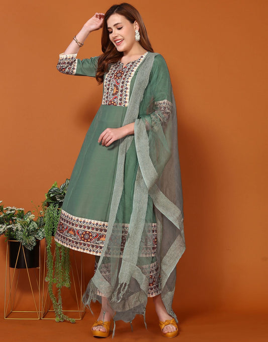 Regular price Rs. 1,029.00Regular priceUnit price / perRs. 0.00Sale price Rs. 1,029.00Green Printed A-Line Kurti With Pant And Dupatta
