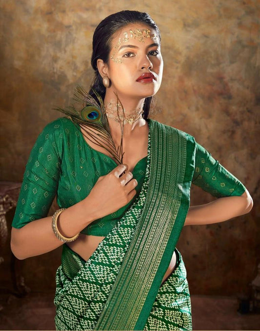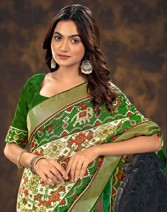Green Printed Silk Patola Saree