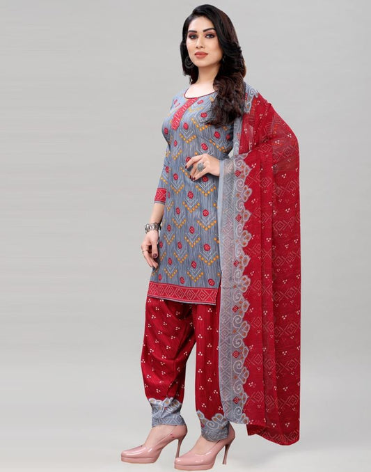 Grey Brasso Cotton Embroidered Unstitched Salwar Suit