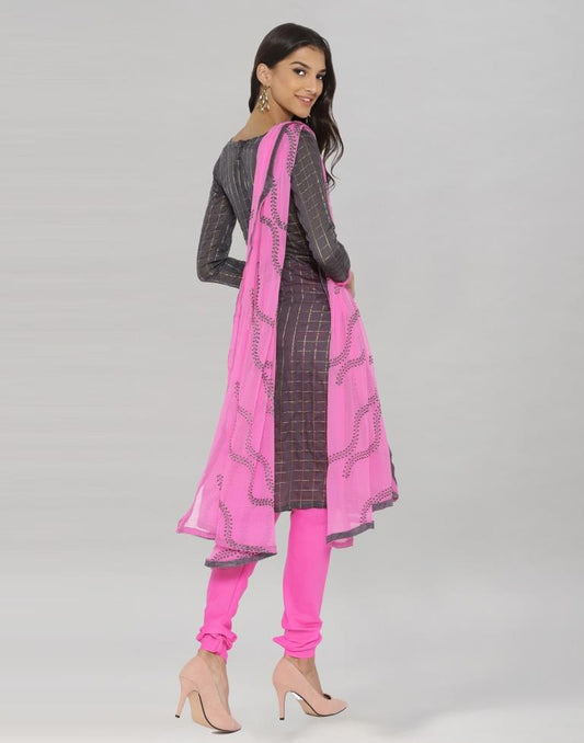 Grey Chanderi Silk Embroidered Unstitched Salwar Suit
