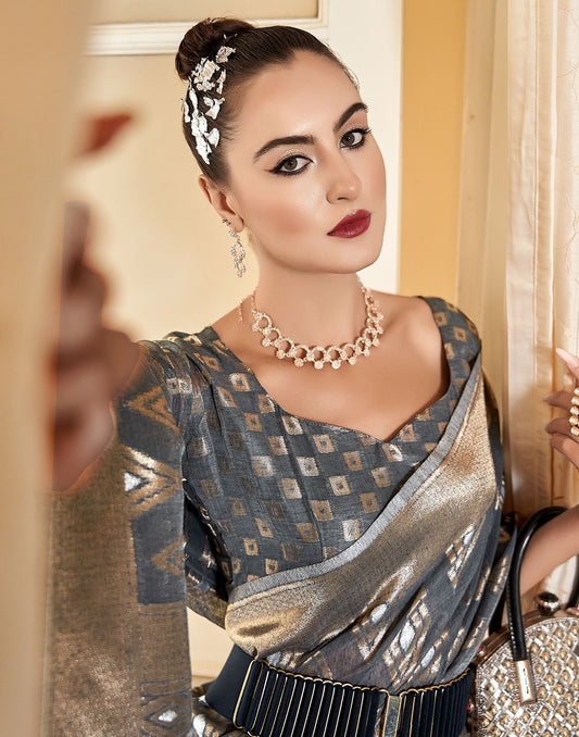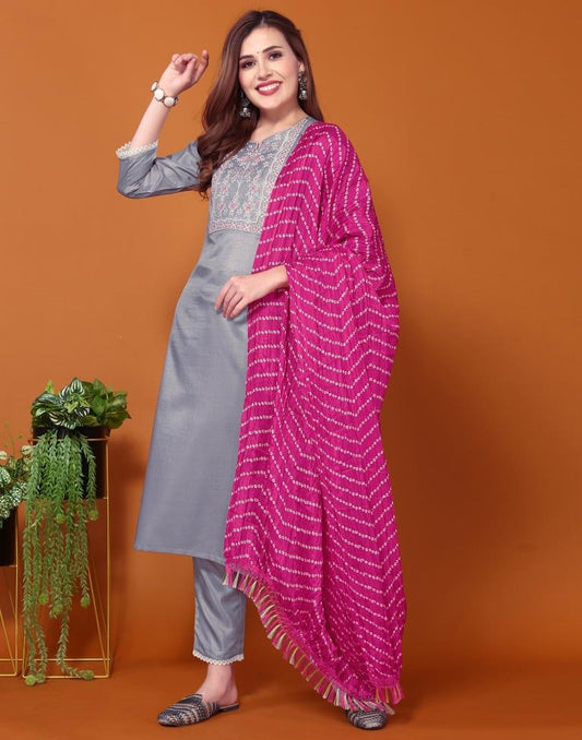 Regular price Rs. 1,029.00Regular priceUnit price / perRs. 0.00Sale price Rs. 1,029.00Grey Embroidered Kurta With Pant And Dupatta