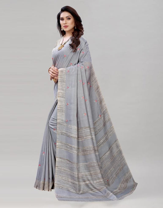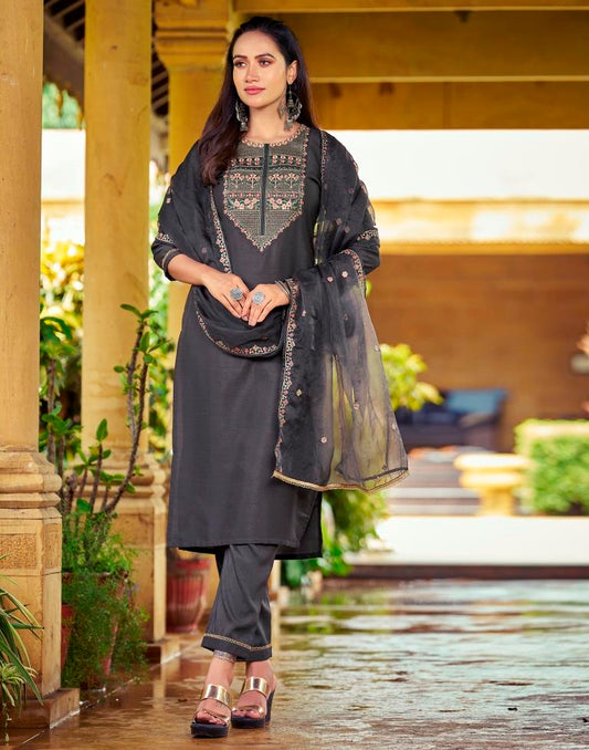 Grey Embroidery Silk Straight kurta With Pant And Dupatta
