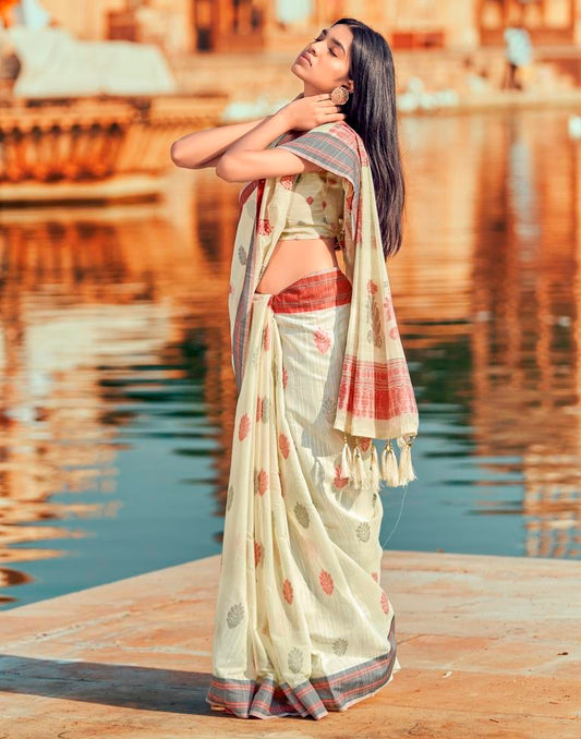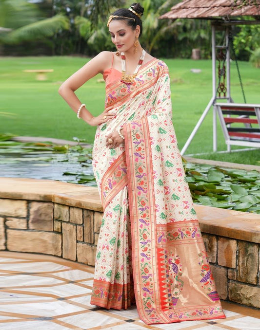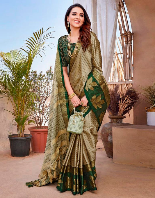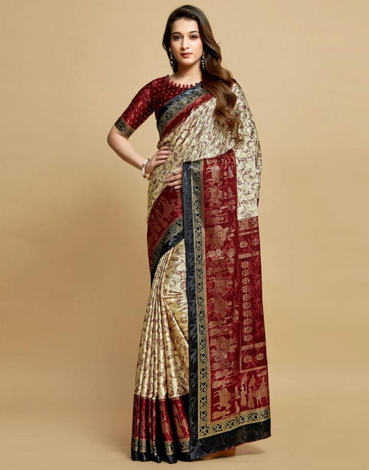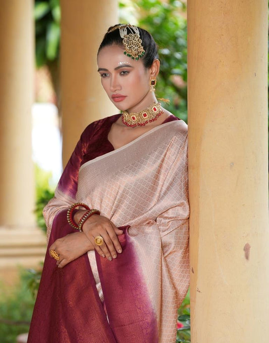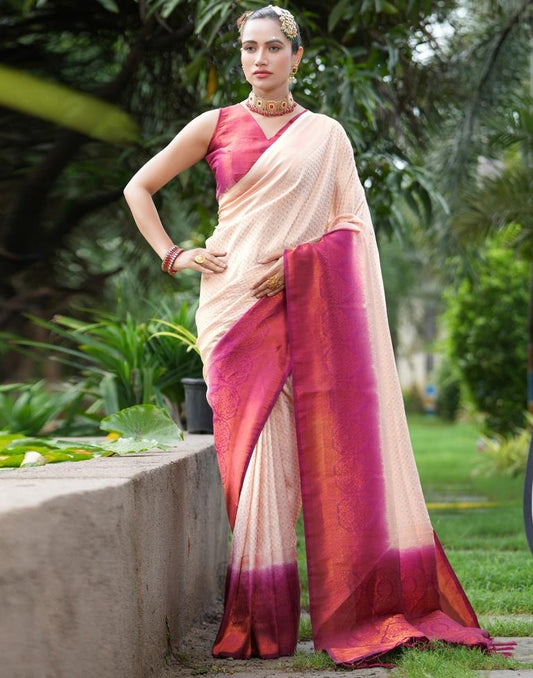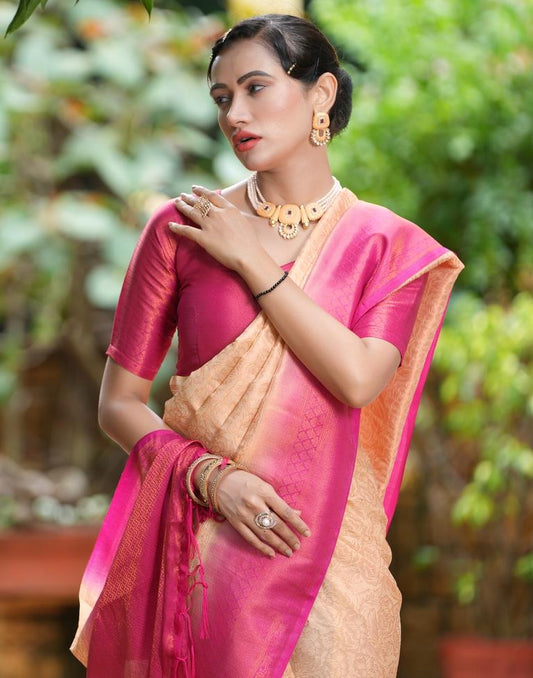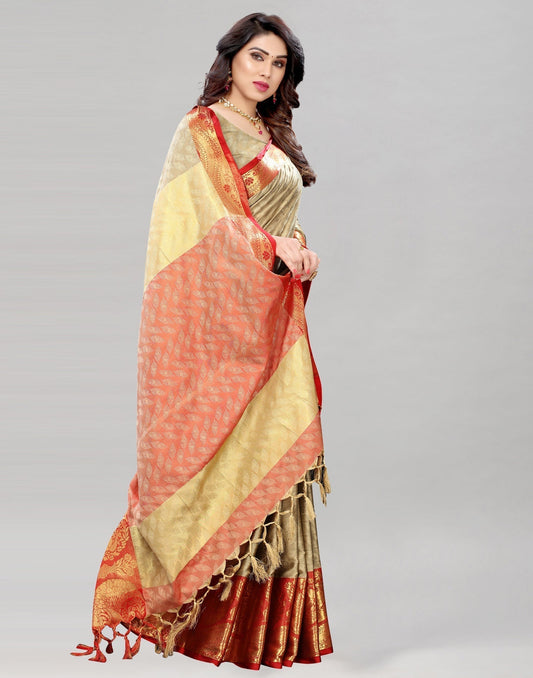 Beige Silk Woven Saree