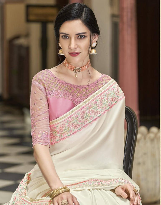 Beige Silk Saree