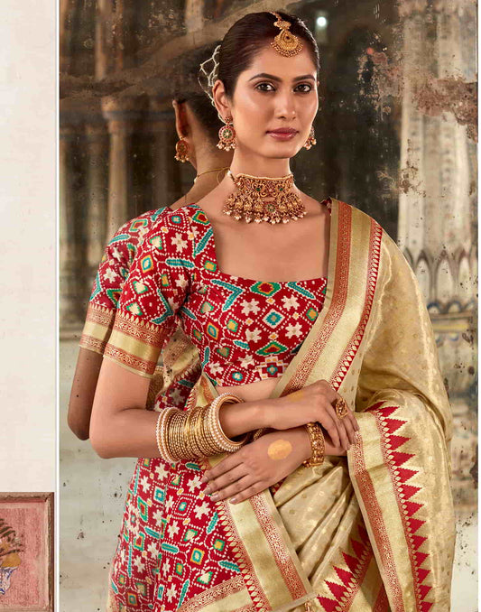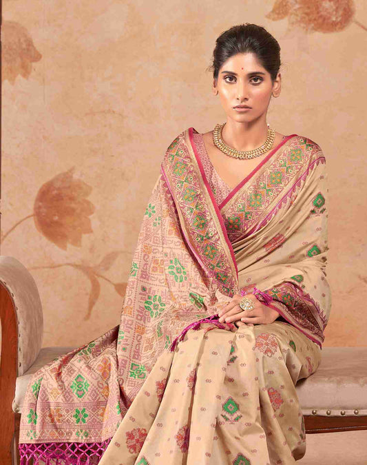 Beige Silk Weaving Patola Saree