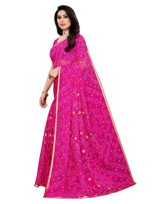 Hot Pink Coloured Chiffon Bandhani Printed Casual saree