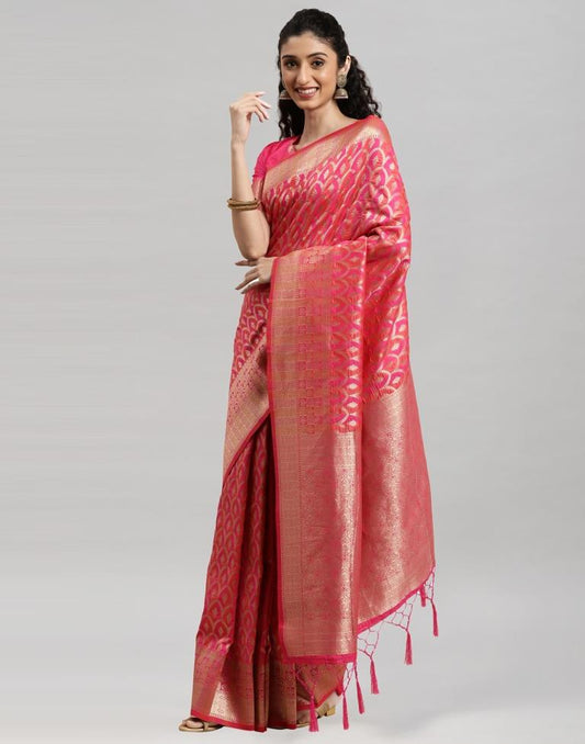 Hot Pink Coloured Poly Silk Banarasi Jacquard Saree