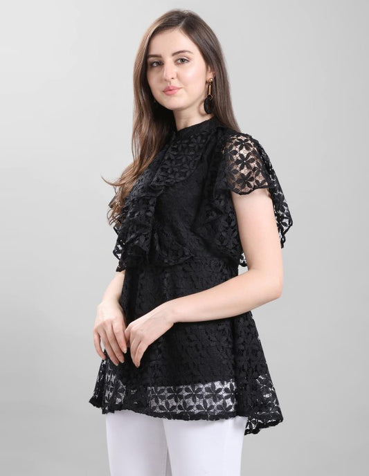 Bewitching Black Coloured Net Russell Net Partywear Top
