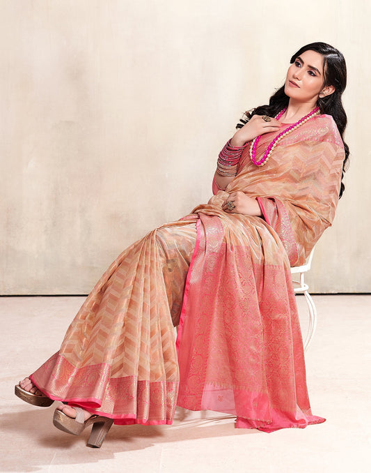 Regular price Rs. 1,099.00Regular priceUnit price / perRs. 0.00Sale price Rs. 1,099.00Beige Woven Chinnon A-Line Kurta With Pant And Dupatta