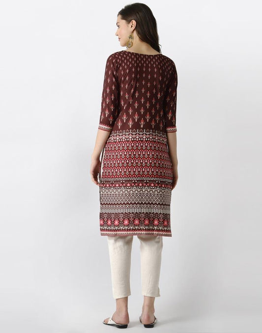 Bewitching Brown Coloured Digital Printed Crepe Kurti