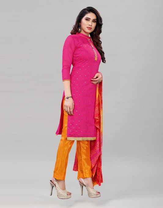 Imperial Pink Cotton Embroidered Unstitched Salwar Suit
