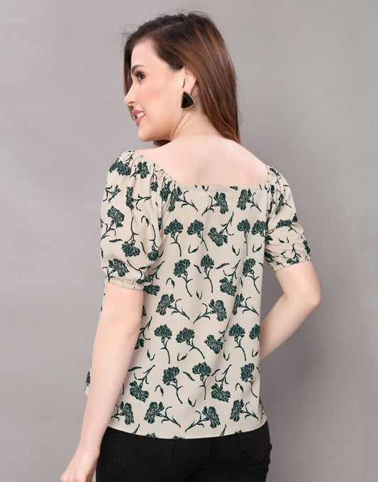 Immaculate Beige Coloured Digital Printed Crepe Tops