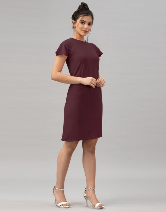 Idyiic Dark Brown Coloured Knitted Lycra Dress