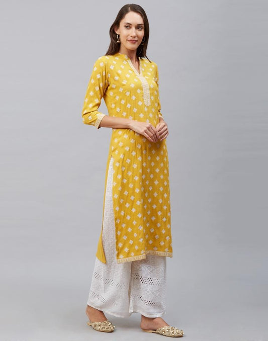 Idyiic Mustard Yellow Coloured Khadi Printed Cotton Kurti