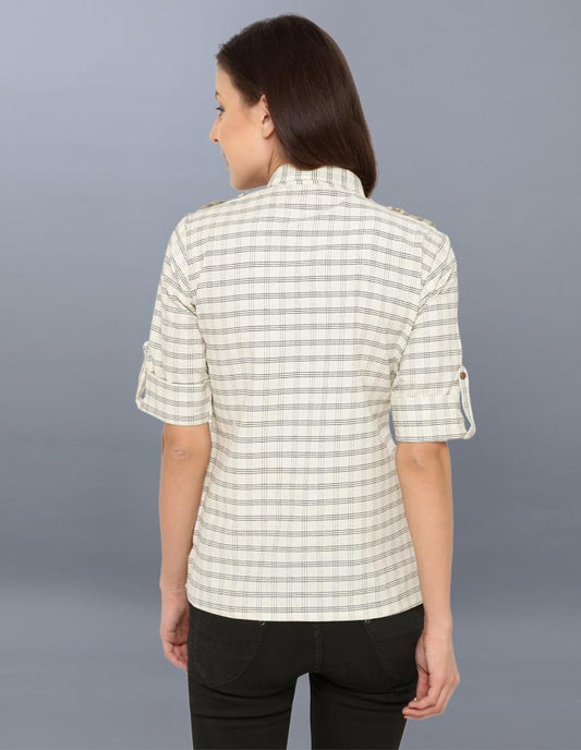 Idyiic Off White Coloured Woven Checks Cotton Tops