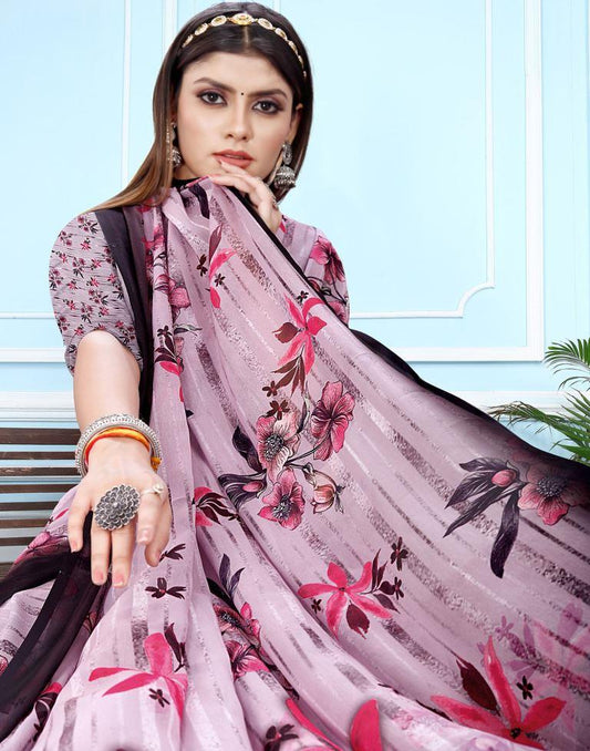 Lavender Georgette Digital Printed Saree