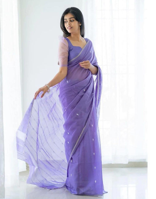 Lavender Jacquard Organza Saree
