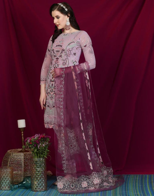 Lavender Plain Georgette Unstitched Salwar Suit Material