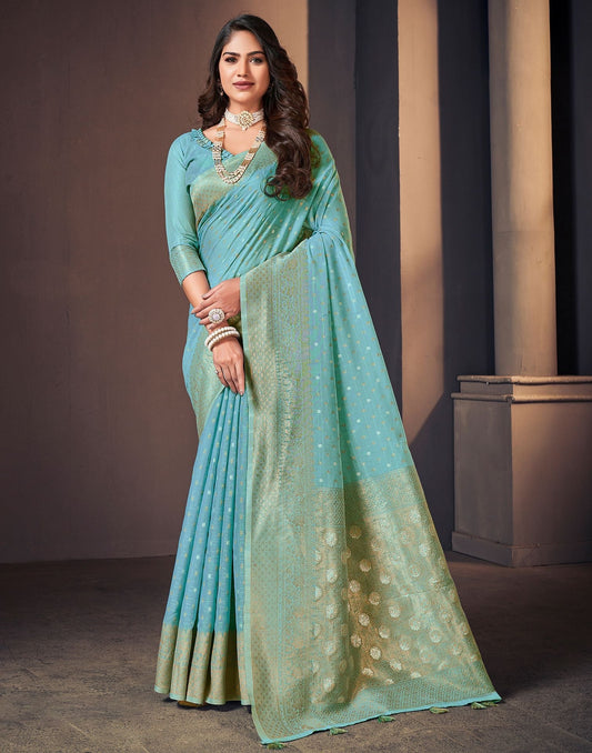 Light Blue Cotton Self Woven Saree