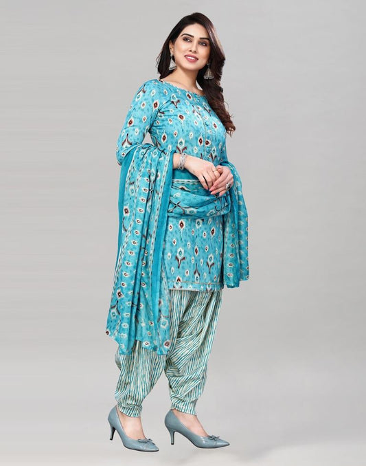 Light Blue Printed Cotton Unstitched Salwar Suit Material