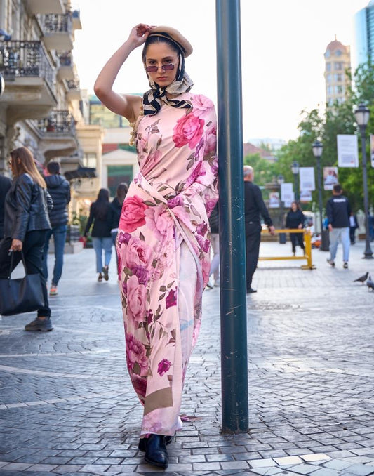 Light Brown Silk Floral Printed Saree