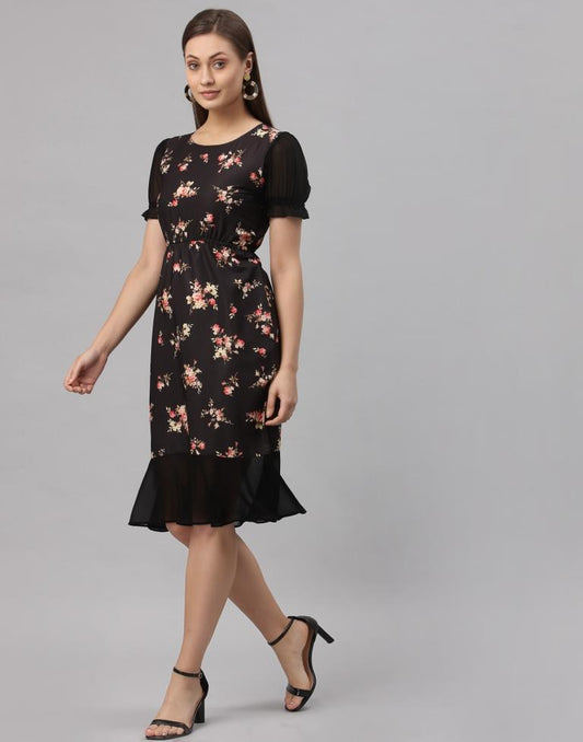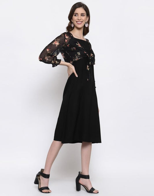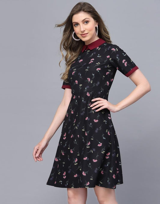 Black And Multicolour Flared Dress