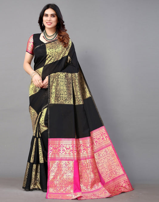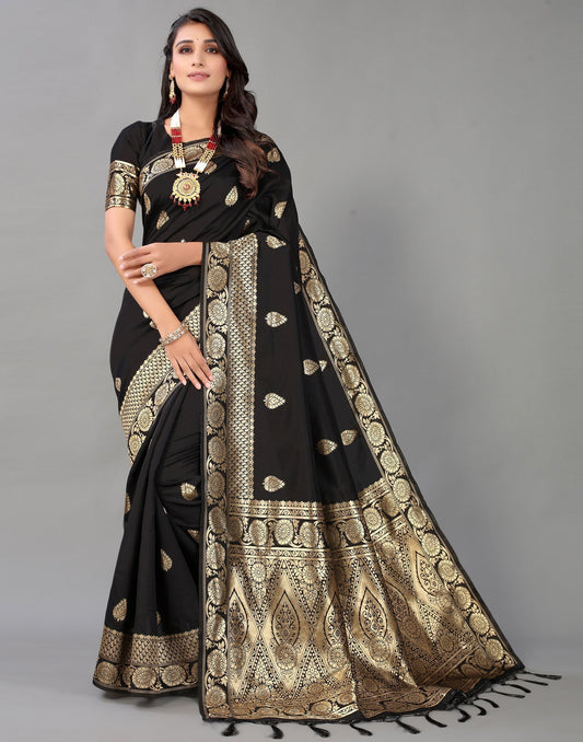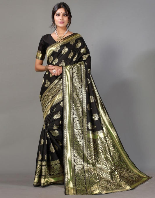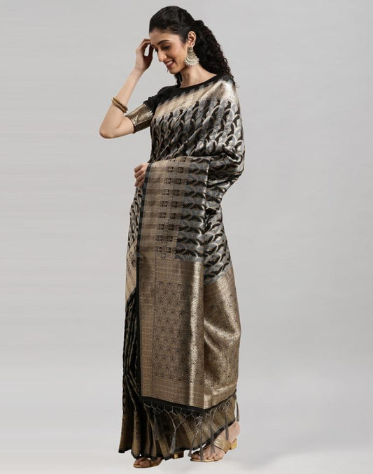 Black And Golden Banarasi Silk Saree