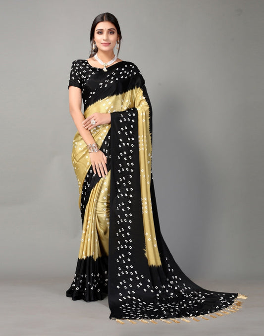 Black and Beige Bandhani Silk Saree